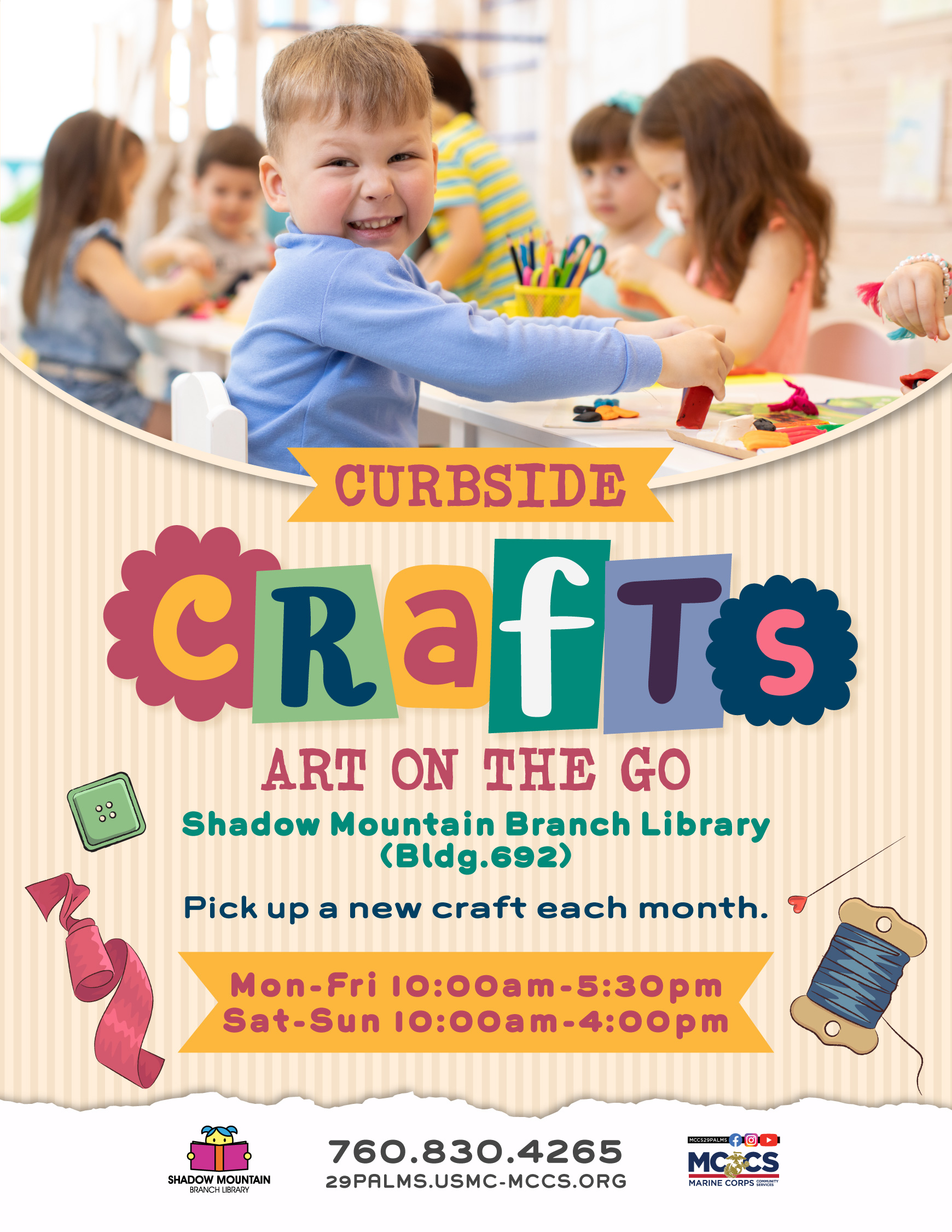 Pick up a FREE family-friendly craft kit each month from Shadow Mountain Branch Library, Monday - Friday, 10:00am - 5:30pm and Saturday - Sunday, 10:00am - 4:00pm.