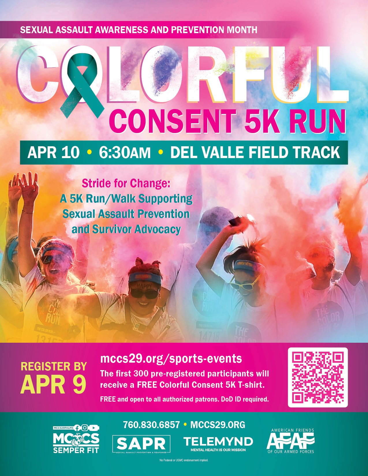 The first 300 pre-registered participants will receive a FREE Colorful Consent 5K T-shirt.