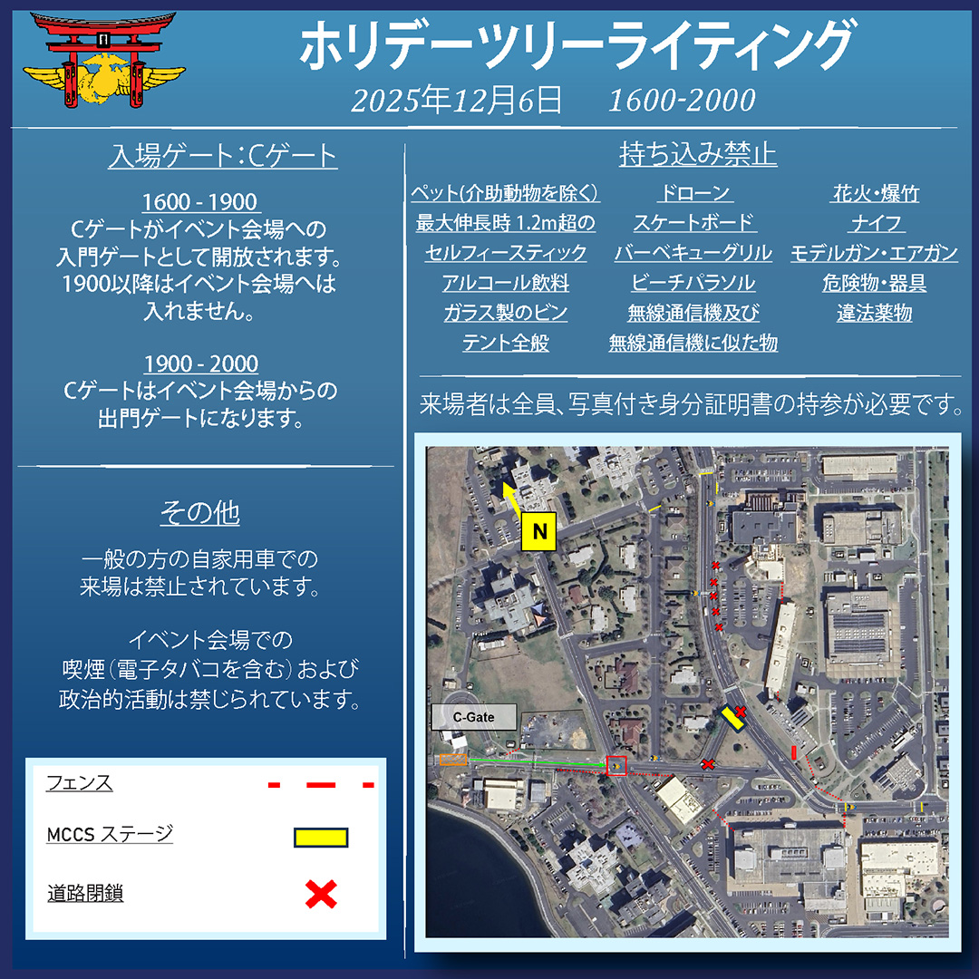 - 岩国基地警備隊の権限で理由の如何を問わず、入場をお断りする場合があります。